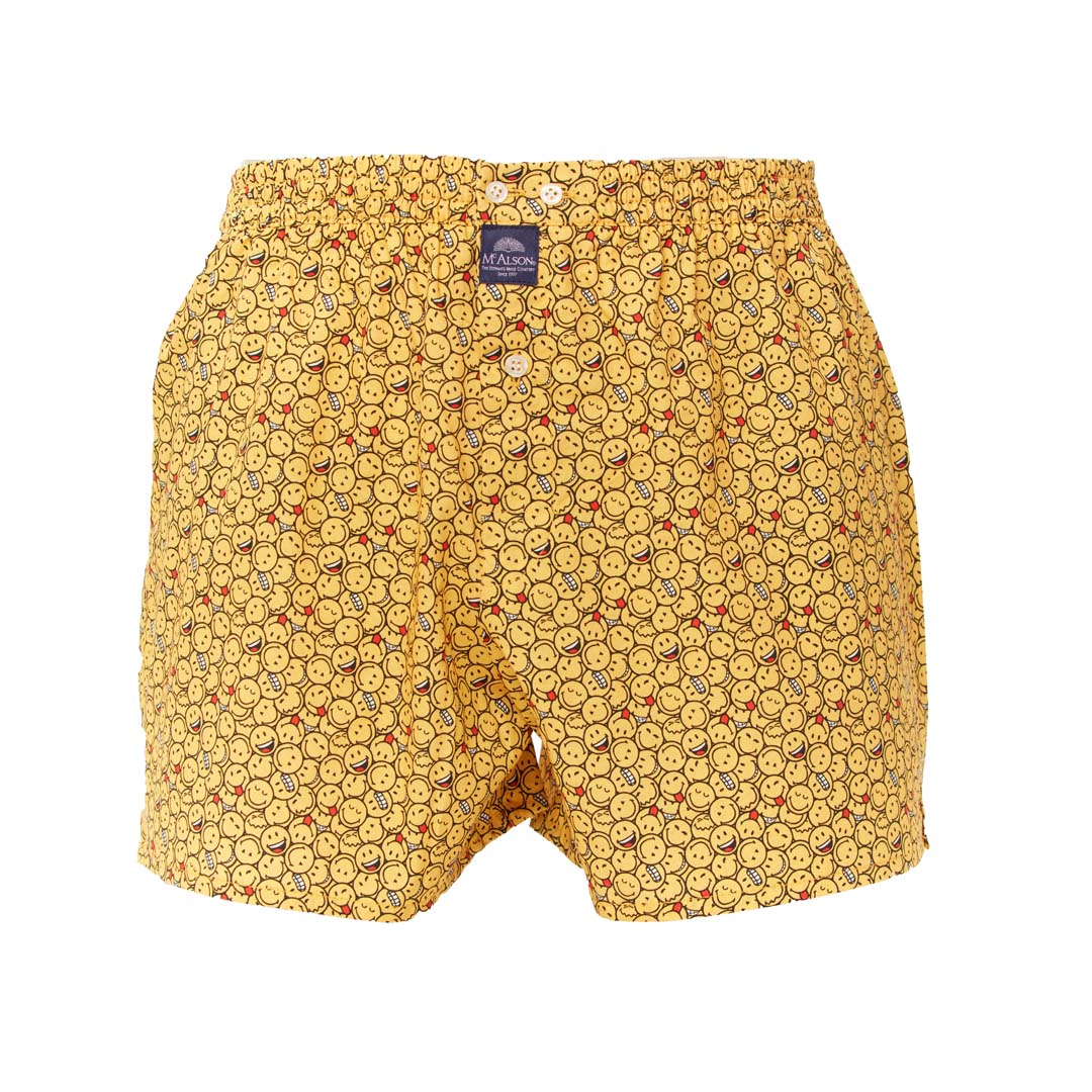 Caleçon Américain à smileys jaunes partout.