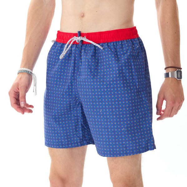 • Classico pantaloncino da bagno di lunghezza media con due tasche laterali e una posteriore.